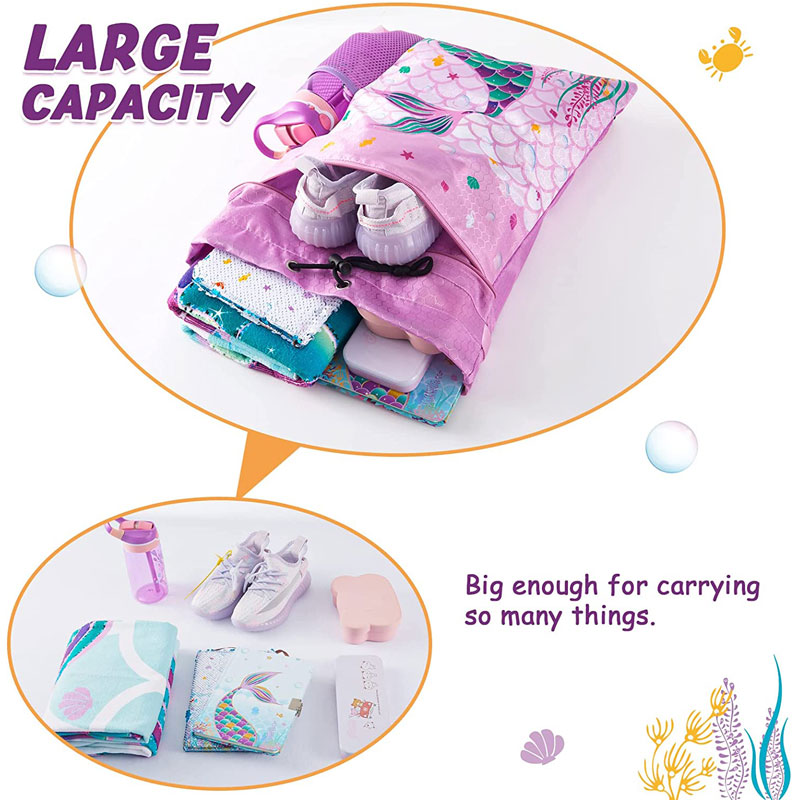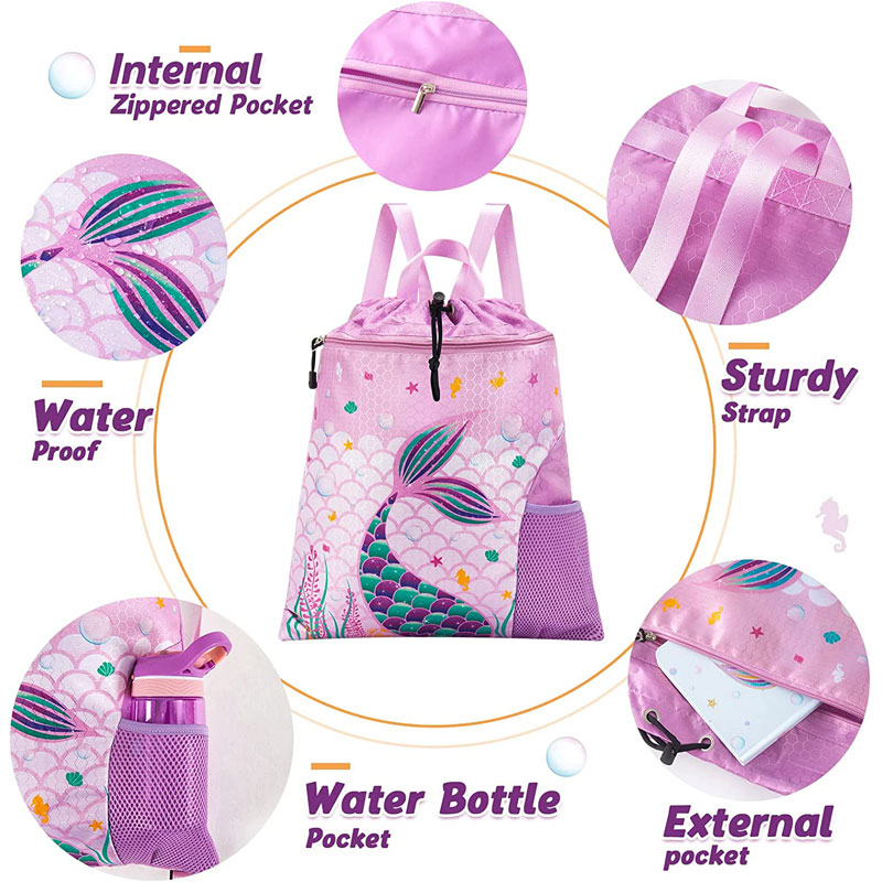 · 【LOOK ATRACTIVO】Diseñado y fabricado por nosotros mismos. Proceso de impresión avanzado. Con el color de fondo violeta, aparece una sirena realista en la mochila de los niños, rodeada de medusas, caballitos de mar y pastos marinos. A los niños les encantará.